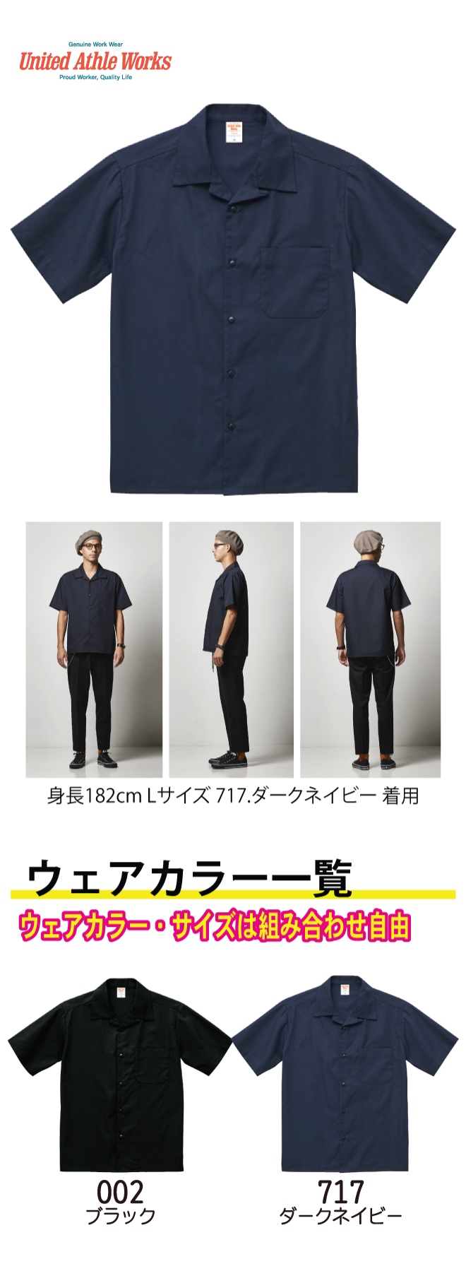 働く人々が周囲から憧れの存在となるワークウェアを提案。かろやかさと光沢感がポイントのオープンカラーシャツ。ロッカーループ付、ポケットにはペン差しと、細部までこだわったヴィンテージライクな縫製仕様です。