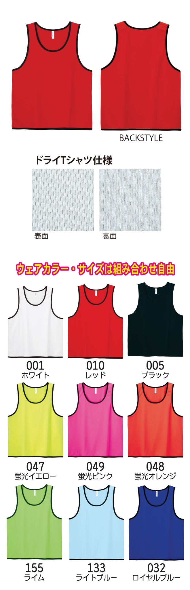 吸汗速乾に優れたメッシュ素材のビブス。