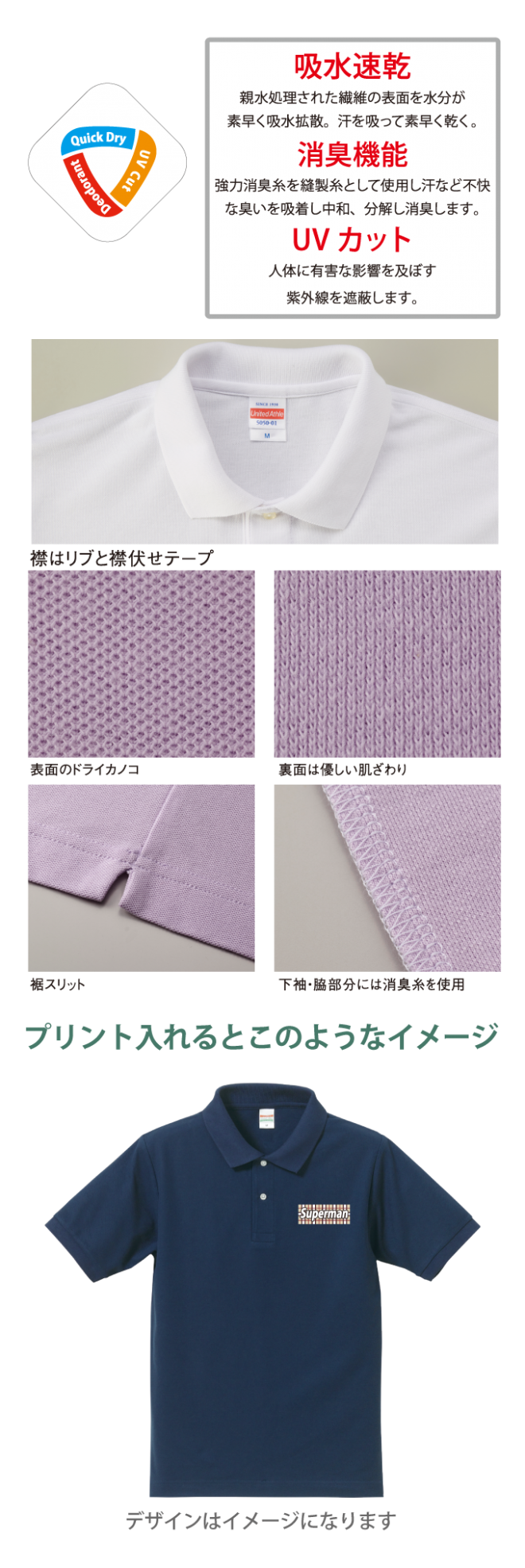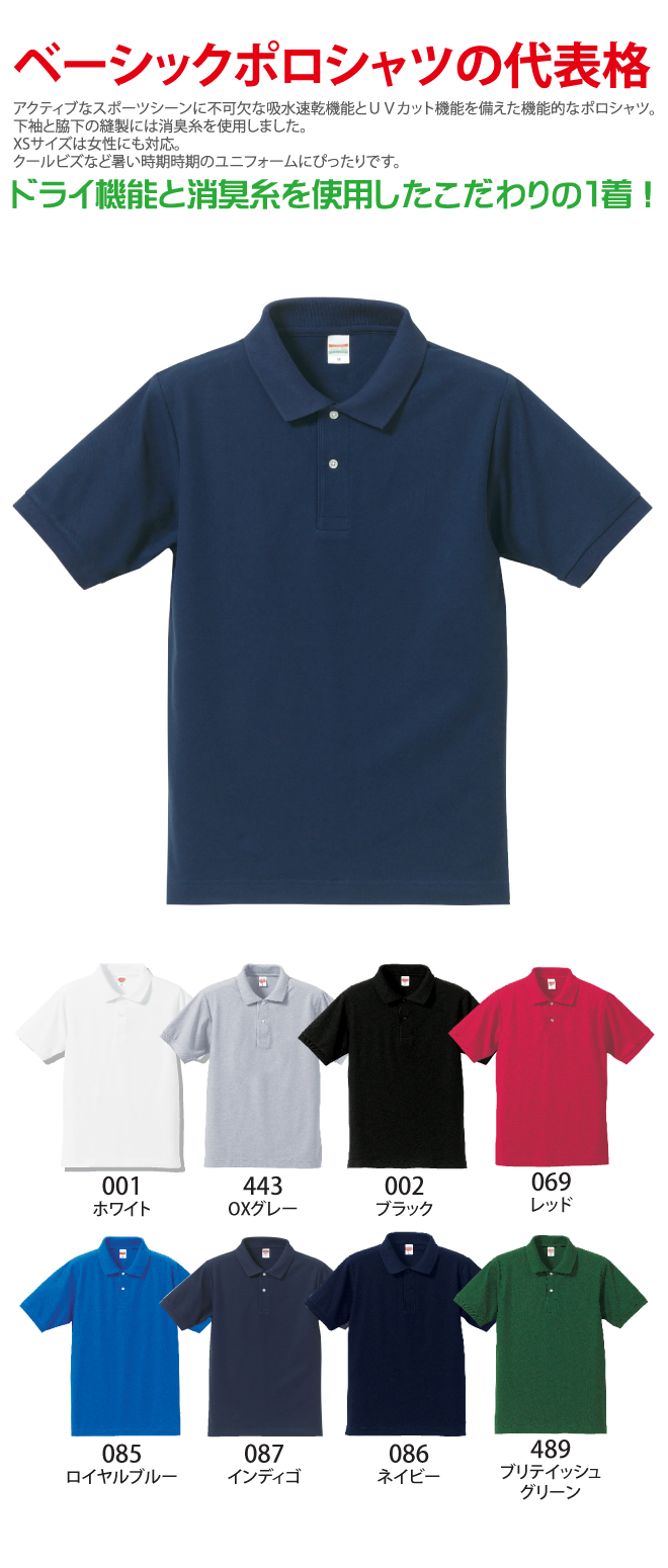 吸水速乾のドライ機能、消臭効果、UVカット機能を備えた多機能ドライポロシャツ!