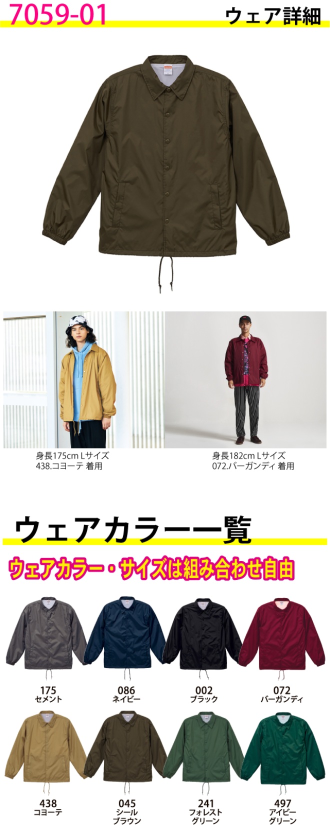 コーチジャケット(裏地付き)