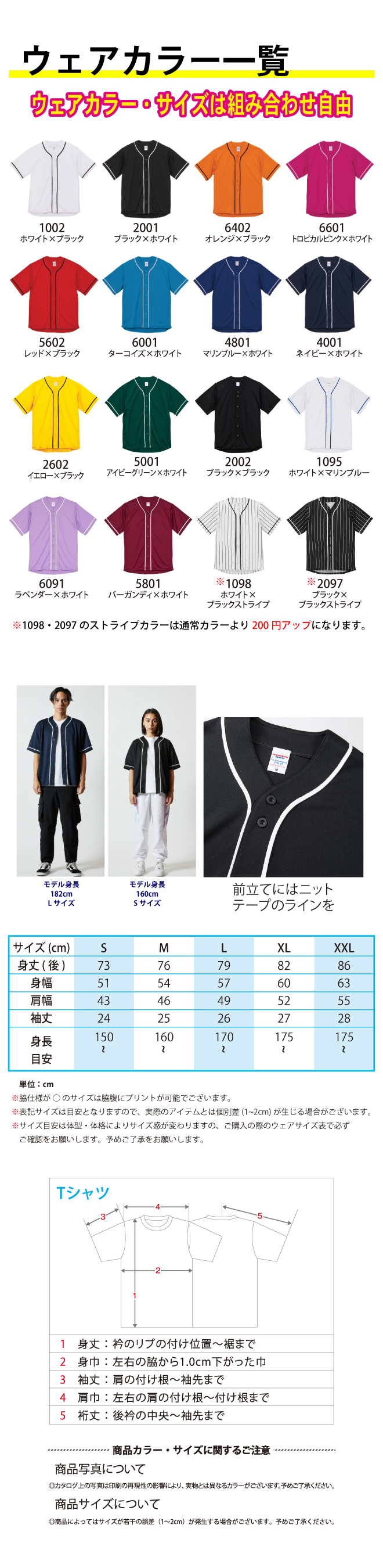 発色もきれいな5サイズ展開はチームウェアに最適