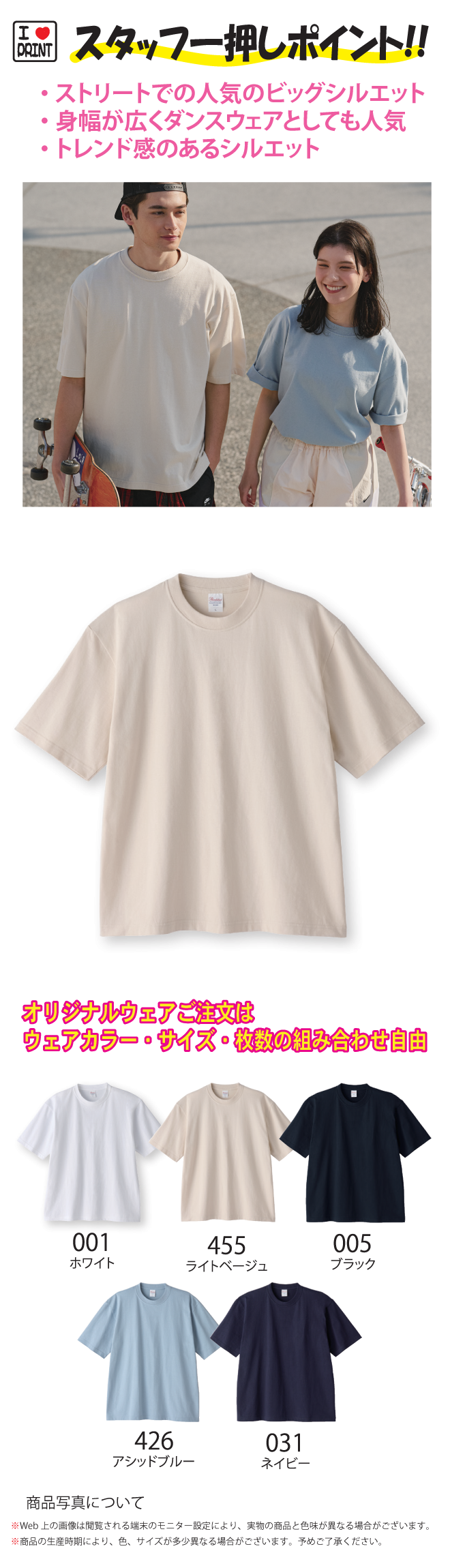 厚手で高級感があり、ブランドTやオリジナルウェアにもおすすめ。