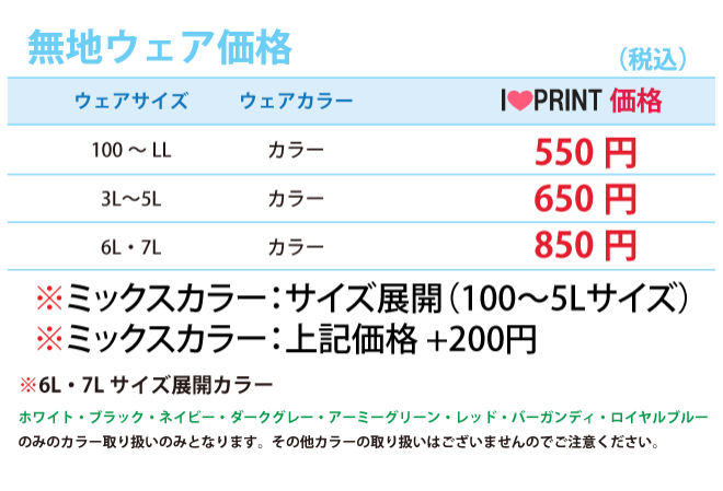 クラスTシャツの作成にお勧めです。